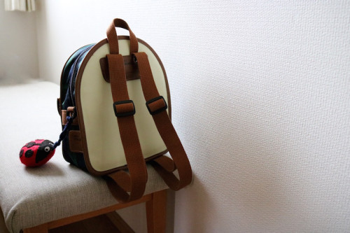 コツを掴むまでは、ローテーブルやソファの上など、背負いやすい高さに置いてあげて、腕を通すよう促すといいですよ。