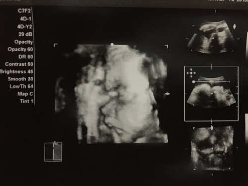 こちらは1人目の時の3Dエコーの画像。手と横顔の様子がはっきりわかります。